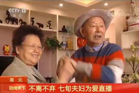 央视网消息:在我们的印象中,网络主播都是一些年轻人,可是一对年过七旬来自湖北武汉的老人也学着年轻人开设了“开心奶奶”网络直播间,从去年7月至今,一年多的时间,直播间最多的时候有8万多网友一同收看。而直播的内容是“开心奶奶”曹雪梅,和患有阿尔兹海默症的老伴崔兴礼的日常生活。一年多时间过去了,老两口的生活有什么变化吗?一起来看看。 上午九点五十分,记者来到“开心奶奶”家中,正赶上了二老每天上午的直播。曹雪梅熟练地点开直播软件,点亮了“开心奶奶”直播间,一开场就为直播间的网友们带来了一场热闹的舞蹈秀。 去年7月,曹雪梅在外孙女的帮助下,学会了网络直播,开设了“开心奶奶”直播间。她叫自己“开心奶奶”,叫老伴“快乐爷爷”,越来越多的网友被二老乐观的生活态度所感染,最高时,有8万多网友同时在线收看他们的直播。 “开心奶奶”曹雪梅在直播时说,自己有个心愿就是能去央视见见董卿,究竟他们的愿望能实现吗? 2017年12月25日,老人参加了央视节目《越战越勇》。 开心奶奶 曹雪梅:(和董卿)面对面聊天,董卿祝我们两人开心快乐,说(我们)为直播间的朋友们传递正能量,她爱我们两个爷爷奶奶。我说,董卿,爷爷奶奶也爱你。 阿尔兹海默症又称老年痴呆,患者会逐渐失语,切断与外界的交流,记忆也会逐渐模糊,忘记家人、朋友或是发生过的事情。为了让患病后的老伴能打起精神,曹雪梅在直播时经常把网友们的留言念给老伴听。 开心奶奶 曹雪梅:特别让我开心感动的就是,爷爷的变化特别大。(原来)见到人从来是我讲一句他讲一句,现在爷爷自己亲自搭话了。 因为网络直播,这对七旬老人的生活受到了不少网友的关注,他们在给网友带来快乐的同时,也诠释了自己的爱情,奶奶常说:不离不弃,生死相依。这让不少网友感慨留言:“这大概就是爱情本来的样子!”