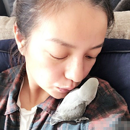 今日,赵薇在微博上晒出自己素颜与鹦鹉的合影,并留言: “吉祥的小鸟。