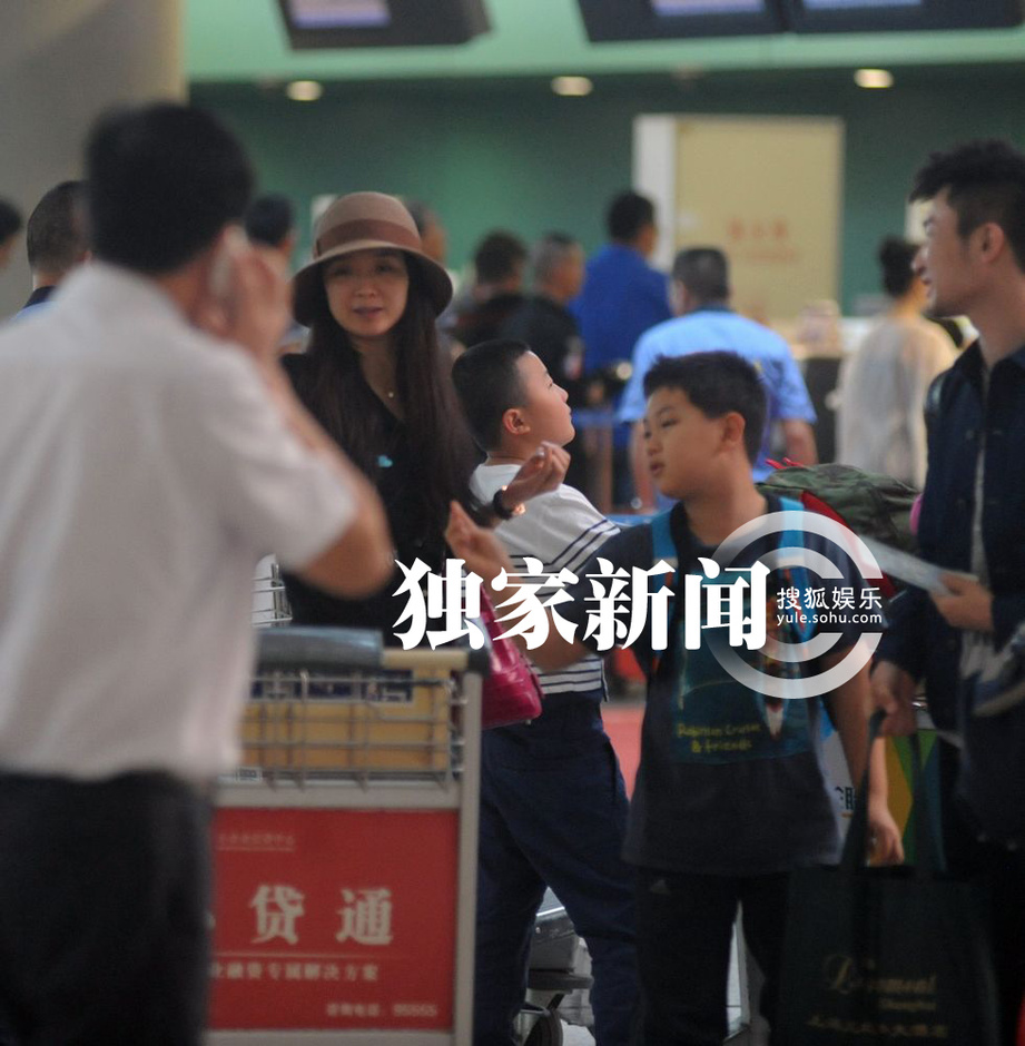“阔太”王艳素颜带儿子离沪 甜笑挥别好友