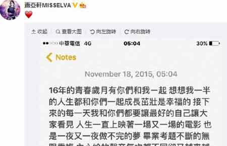今日,萧亚轩在微博发文纪念出道16年,感慨写道:“16年的青春岁月有你们和我一起,想想我一半的人生都和你们一起成长茁壮是幸福的。”