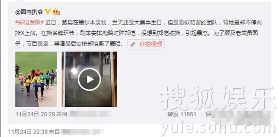 搜狐娱乐讯 近日,跑男在墨尔本的录制过程中状况频发,除了被当地群演吐槽剧组工作人员态度差,看似和谐的团队,也被曝出有不和谐声音。微博认证号“圈内扒爷”曝料并附上一段现场视频,在撕名牌环节,鹿晗对阵郑恺,没想到郑恺被撕后暴怒,当场脱掉上衣狠摔。