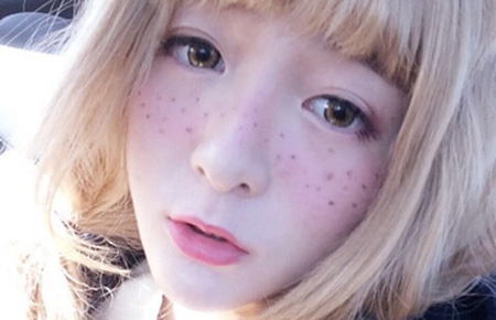 徐娇戴假发晒自拍 画“雀斑妆”面色红润(图)