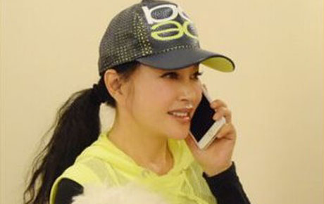 刘晓庆梳双马尾造型可爱 怀抱爱犬打电话(图)