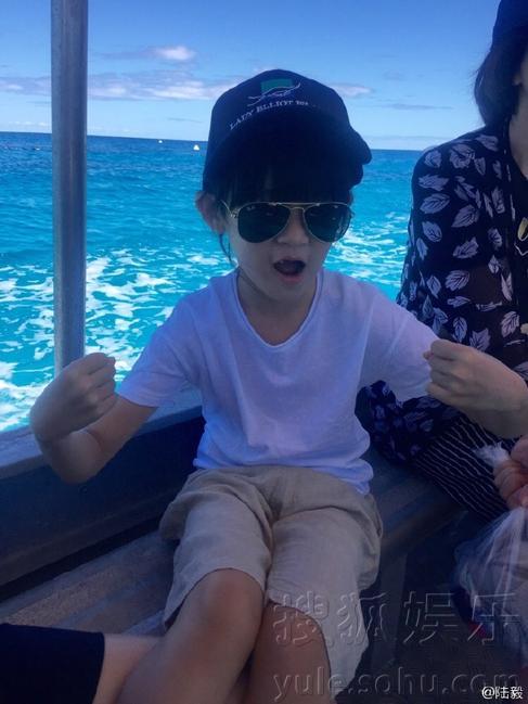 陆毅与两女儿海边嬉闹 迷你贝戴遮阳帽呆萌可爱(组图)
