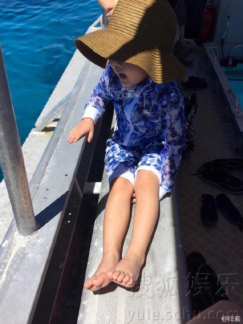 陆毅与两女儿海边嬉闹 迷你贝戴遮阳帽呆萌可爱(组图)