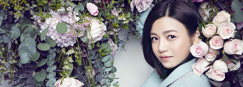 陈妍希一身极富设计感的白裙,置身于浪漫的粉色玫瑰与藤蔓之中,清新脱俗,娉婷动人,俏皮可人。