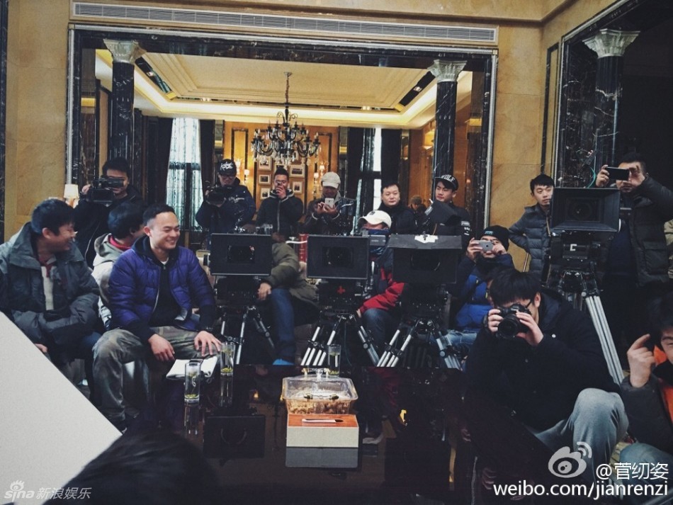 胡歌新剧杀青晒大合照 撩发自拍实力卖萌