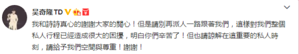 30日有婚纱摄影业者在微博贴出两人现身纽西兰机场的照片,拍完婚纱,婚宴也进入倒数阶段。