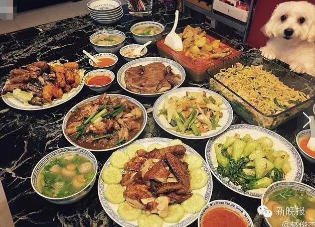 ↑↑林俊杰家的年夜饭,狗狗是亮点。