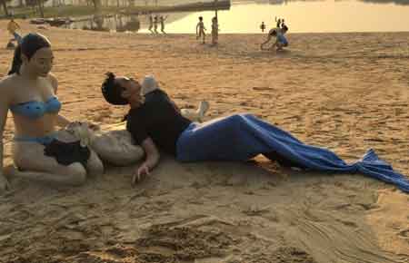 周星驰电影《美人鱼》即将上映,主演邓超为了宣传拼了!邓超穿上鱼尾,躺沙滩变身美人鱼,既有逗比一面,又有妖娆的一面。
