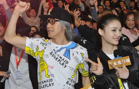 周星驰豪气为影迷撒红包 “美人鱼”林允可爱卖萌(高清)