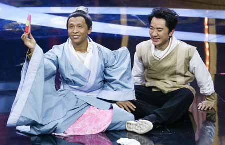 周星驰携电影《美人鱼》主创人员“美人鱼”林允、“博物馆馆长”杨能和“郑总”郑冀峰来到福州各大影城,在春节长假最后一天为影迷派送新年红包。