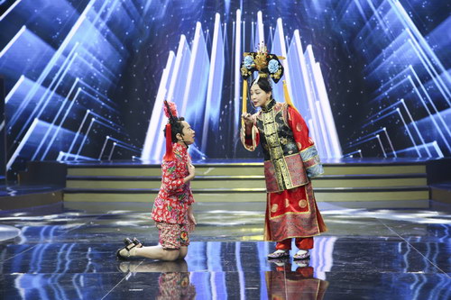 王祖蓝和宋小宝的再次同台,依旧没有逃脱被比身高的命运,宋小宝现场更上拉上曾志伟和潘长江两位前辈,4人齐比身高很是热闹。节目中,除了各位顶级喜剧人的激烈比拼,两位队长也上演了一场“队长王牌争夺战”。有着“百变星君”之称的王祖蓝队长,以一袭热裤小花袄装扮,搭配肉丝短袜及黑色亮晶晶小凉鞋,创造性十足的混搭风格极其吸引人们的眼球,令观众眼前一亮,视线不忍离开,表演妆容上王祖蓝更是细致入微,依靠两块贴在眼睛上的胶布瞬间变身还珠格格里的“容嬷嬷”,并且激情演绎了一曲热力十足的《舞娘》,惊艳四座。“舞娘版的容嬷嬷”王祖蓝现场直言真的容嬷嬷不会出现的时候却意外引出真皇后,此身“容嬷嬷”的装扮使得皇后娘娘都几乎笑场,赐针一枚让其自罚。