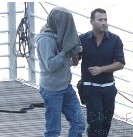 莱昂纳多用衣物蒙住脑袋,抗拒镜头。