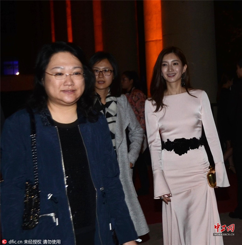 独家:粉色丝绸礼裙高贵优雅 江疏影获安保开道(图)