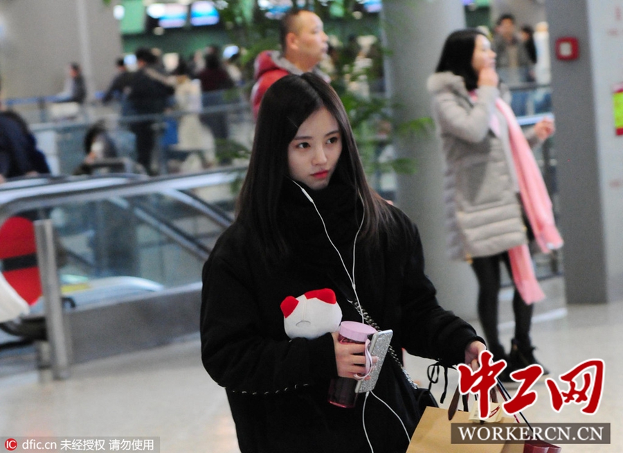 2016年2月17日,上海,近日,SNH48成员鞠婧祎现身机场,获高人气,粉丝纷纷向其赠送礼物,有吃的,喝的,玩的,鞠婧祎更是一路怀抱粉丝赠送的公仔直至上车离去。
