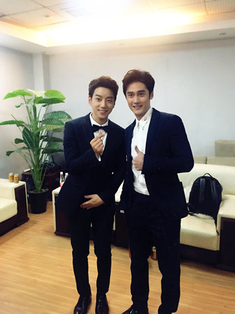 网易娱乐2月24日报道 昨晚,90后人气小生蒋劲夫和最近大热的韩国欧巴黄致列在个人社交网站晒出了两人亲密互动照片,引发网友热议。