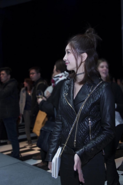 江疏影朋克风亮相时装周 黑色长裙秀美腿