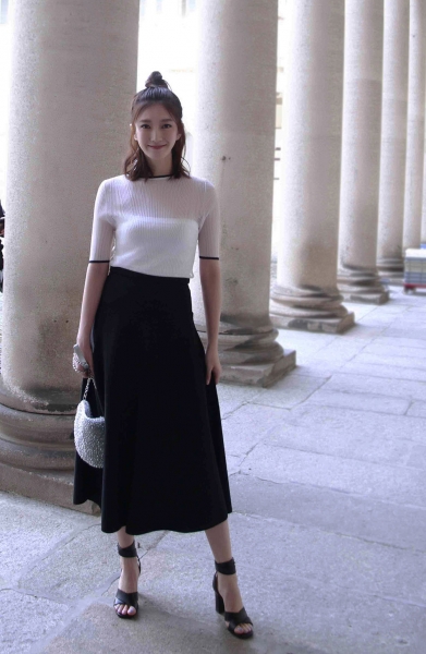 江疏影朋克风亮相时装周 黑色长裙秀美腿