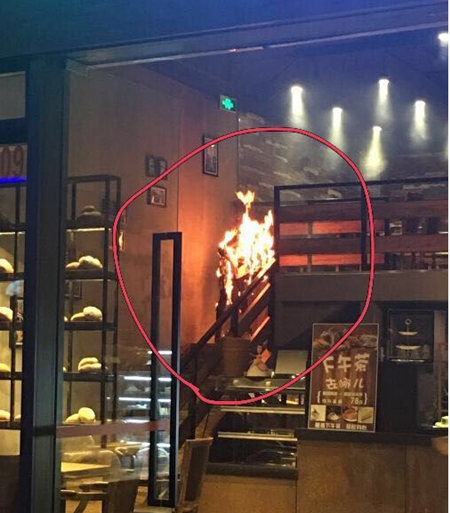 有网友在某网站上爆料称,昨天晚上路过事发的咖啡店看到了当时的情况。据该网友称,小姑娘全身着火,本来只有头发,几秒后蔓延到全身。