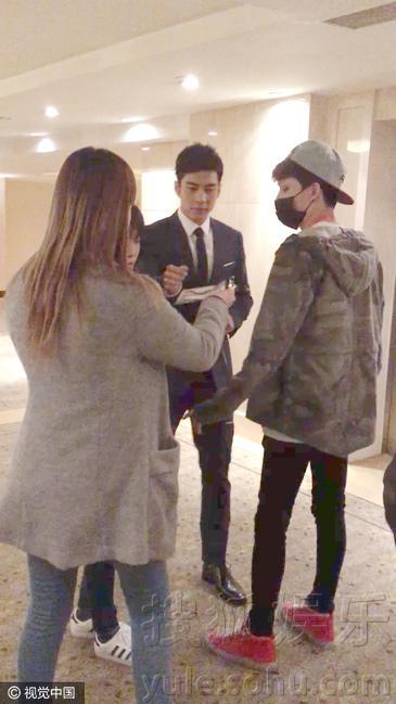 韩东君黑色西装帅气现身 贴墙壁认真给粉丝签名