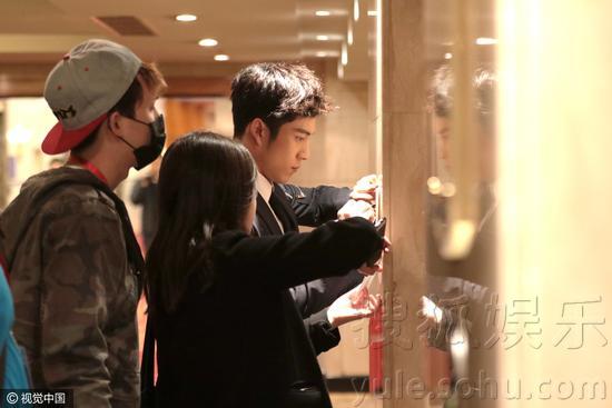 韩东君黑色西装帅气现身 贴墙壁认真给粉丝签名