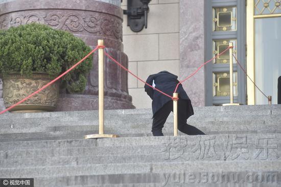 冯小刚参加全国政协闭幕 为躲记者钻过警戒线