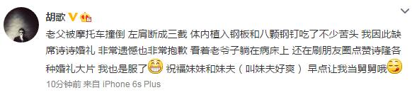 胡歌将缺席隆诗婚礼 曝父亲惊传骨折送医!