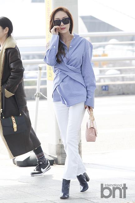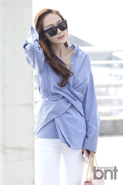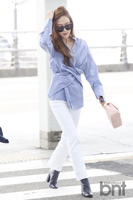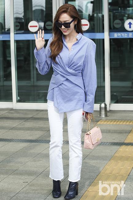 搜狐韩娱讯 21日上午,韩国歌手Jessica靓丽现身仁川国际机场,为拍摄写真前往伦敦,一身蓝白时尚简约清爽。bnt新闻/供稿 许杰/文 曺熙善/图