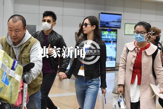 吴奇隆刘诗诗婚后回京 穿情侣衣十指紧扣(组图)