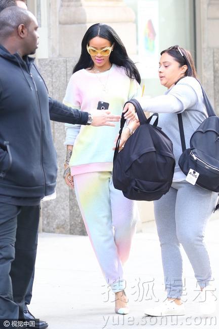 蕾哈娜一身复活节套装现身 与友人告别心情靓