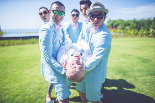 包贝尔与包文婧3月30日在巴厘岛补办婚礼,迎亲仪式于中午结束。在迎亲过程中,韩庚、王祖蓝、杜海涛等组成的伴郎团狂被指压板虐,包文婧更是女王范儿与伴郎、伴娘团合影……