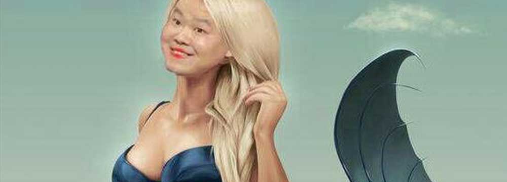 3月8日,岳云鹏在微博上po出一张扮美人鱼的ps搞怪照片,金发大胸翘臀,加小眼睛和性感小红唇,画面实在太美不忍直视,吓死本宝宝了!