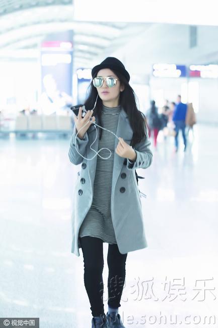 谢娜淡妆潮搭现身机场任拍 与老公电话热聊