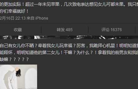 汪峰碰到个极品前任,葛荟婕连续发布微博呛声章子怡。这次把一直不出声、不理会的汪峰惹怒了,发布1300多字的长微博理论此事,并直接@葛荟婕……