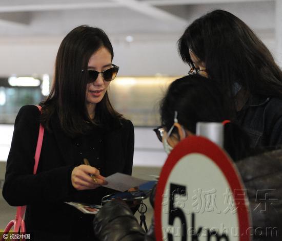 刘诗诗一身黑衣现身机场 背粉包包露少女心