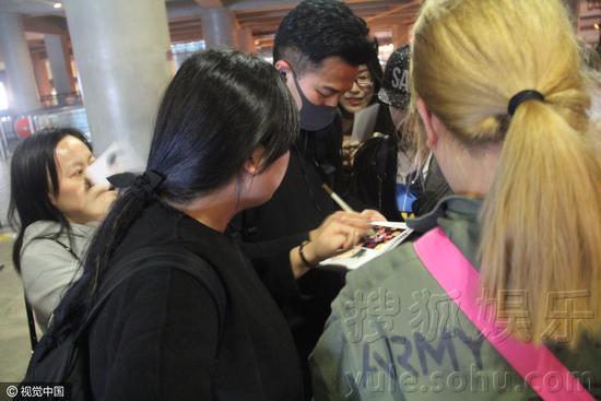 刘恺威深夜抵沪拍戏 获粉丝追捧停步为大家签名