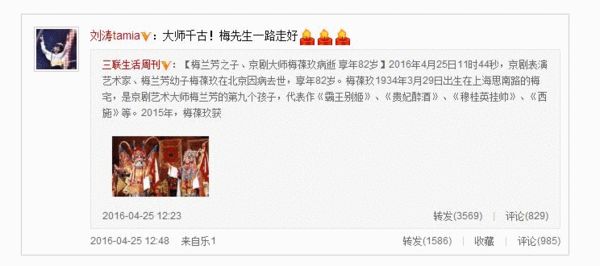 郭德纲表示:“我大概十几天前就听到这个消息,说梅先生住院脑死亡了,一直用呼吸机,特别希望能出现奇迹。八十几岁的老艺术家,最后今天还是传来噩耗了,只能说梅先生一路好走吧。希望我们的京剧能够后继有人。”