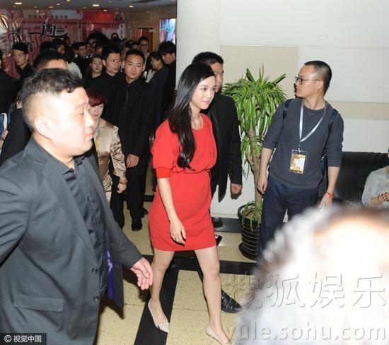 准妈妈汤唯一袭红衣现身 获众保镖护驾照顾