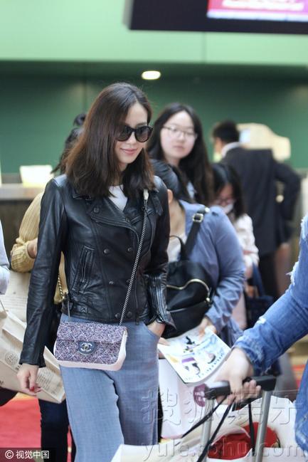 刘诗诗一身潮装现身机场 一路微笑与友人畅聊