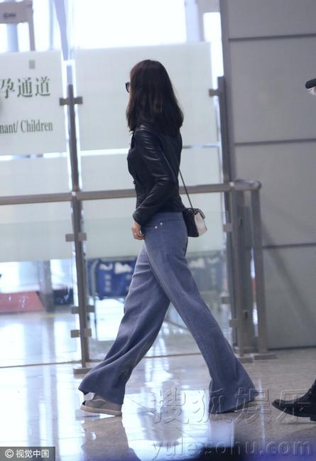 刘诗诗一身潮装现身机场 一路微笑与友人畅聊