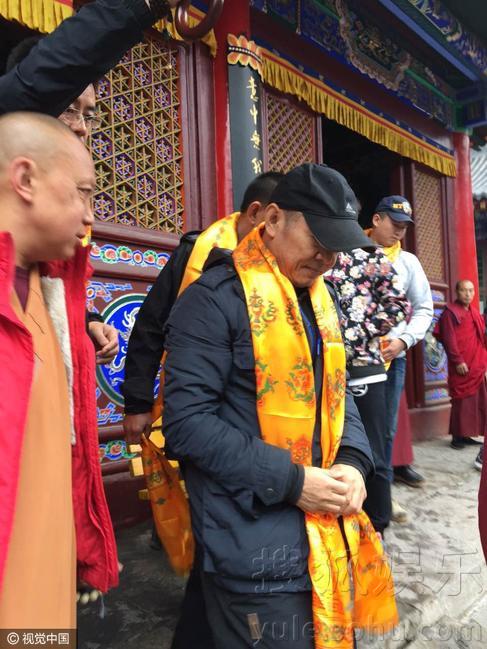 李连杰冒雨登上五台山 黑色运动服显朴素