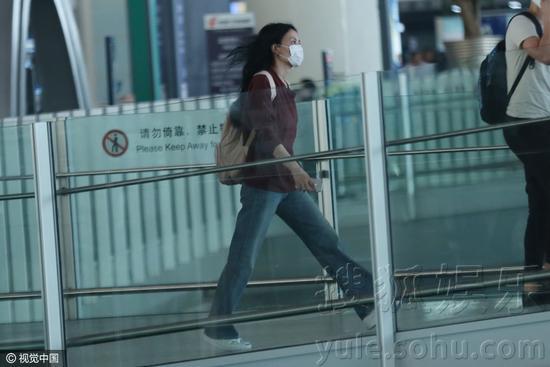 王菲一身休闲装现身机场 口罩遮素颜依旧仙范儿