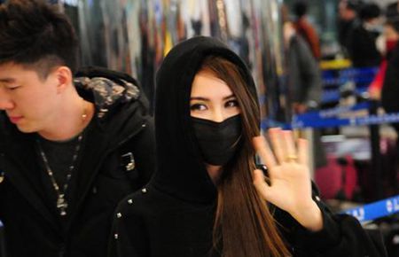 昆凌口罩遮面现机场 见拍照忙用手遮挡晒婚戒