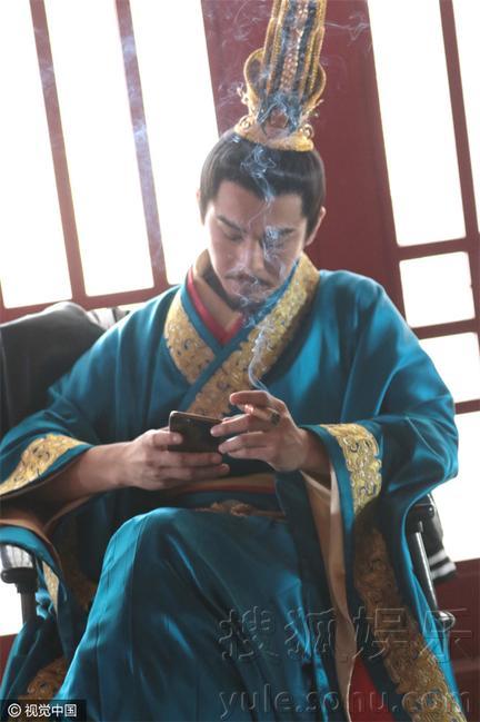 乔振宇古装横店拍戏 抽雪茄吞云吐雾玩手机