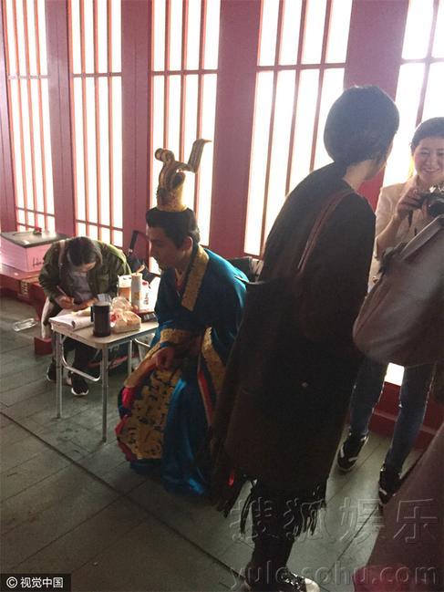 乔振宇古装横店拍戏 抽雪茄吞云吐雾玩手机