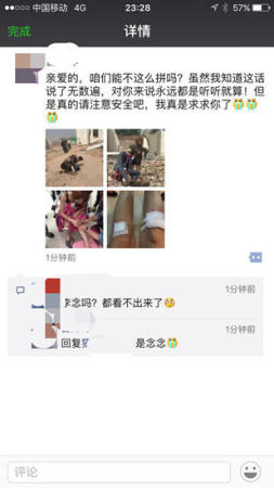 网易娱乐5月10日报道 昨日,李念工作人员在朋友圈晒出一组李念受伤的照片并说道“亲爱的,咱们能不这么拼吗?虽然我知道这话说了无数遍,对你来说永远都是听听就算!但是真的请注意安全吧,我真是求求你了。”