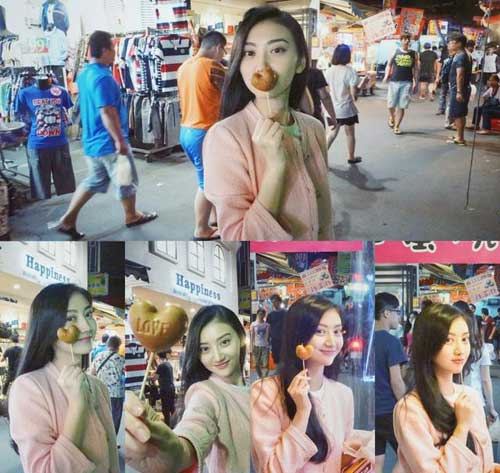 景甜现身台湾夜市 别人负责逛她负责美(图)
