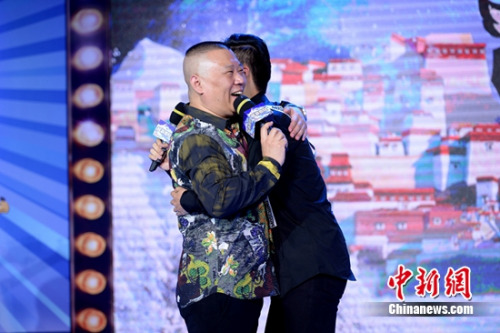 中新网北京5月17日电(记者 张曦) 17日,电影《摇滚藏獒》在北京举行发布会,原著作者郑钧及其妻子刘芸,参与配音的郭德纲携其子郭麒麟,和“新晋网红”小小岳、德云社成员孙越等出席助阵。活动上,郑钧打起快板,郭德纲则玩起吉他,搞笑互换职业身份。