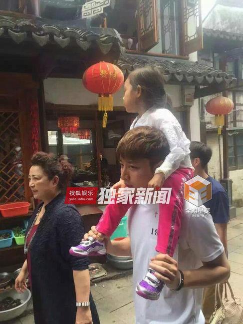 人肉代步机!甜馨坐在爸爸脖子上游苏州